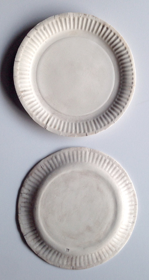 石木さんはこのお皿を作る際、実際の同じサイズの紙皿を使用します。