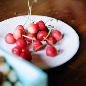 紙皿にのっかったさくらんぼ
