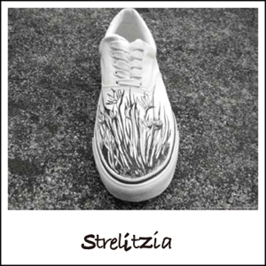 温室植物として栽培されるほか、切り花として生産もされるゴクラクチョウ科の「Strelitzia」。こちらは左右とも同じ図柄のパターン。
