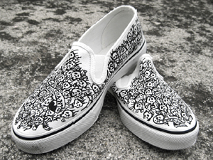 そこで、彼のウェブサイトを何気なく開いたところ、大興奮!ベーシックなデッキシューズに描かれたイラストは何と全て彼の手描きというではないですか!元々センスのあるヤツだとは常日頃から思っていたのですが、これは腐れ縁からとんだモノを発見してしまいました。