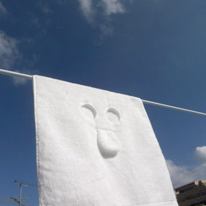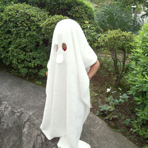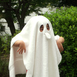 思えば子供の頃、白いシーツを被ってオバケごっこをしたものです。まさか、こんなオバケごっこ用のタオルと出会うなんて、想像もしなかったけど。