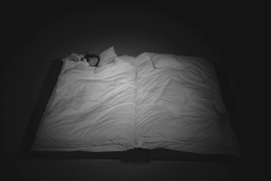 sleeping on the book bed