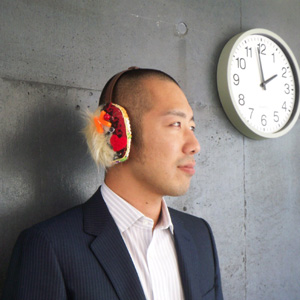 写真でご覧いただけるとおり、お子さんから、おじさんまで(写真の彼はまだ若いですが)幅広い皆様にお楽しみいただける、このイヤーマフラー。
