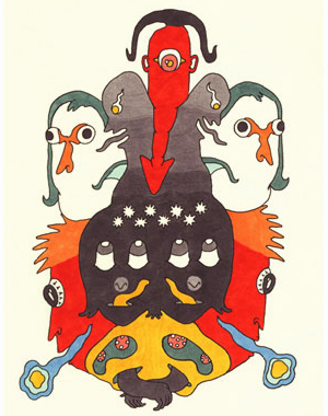 もえさんのイラストは、まっさらな白地にポップな色や形が冴え渡り、シンプルで明快、かわいくて楽しくて、と一見キャッチーな印象を与えます。でも実は、よくよく覗き込んでみると、アイデアやコンセプトがぎっしり詰め込まれたメッセージ性の濃い絵だったりもするので、そこにはグロテスクでシュールな表現も多く見られます。「よく見ると恐い」と言われることもあって、もえさんいわく、人との距離を否めないなあと感じるときも。