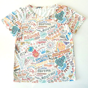 そんな前向きな気分を繰り返し思い出し、ひとつとして同じことなどない毎日を共に過ごせそうなTシャツには、色とりどりたくさんの「ROUTINE」が描かれています。