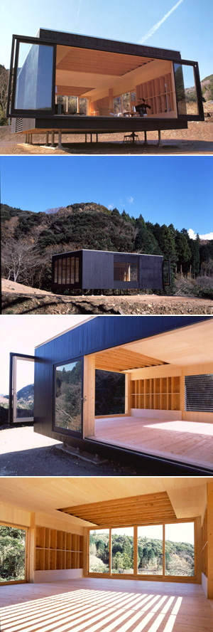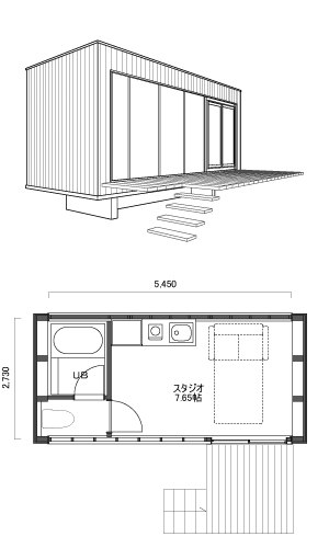 例えば、外壁はスタジオタイプと同様に杉板を張った場合には、約13万円ぐらいから、一番上の写真のように金属で仕上げた場合には13.6万円ぐらいからです。(開口部の大きさによっても金額は変わります。)