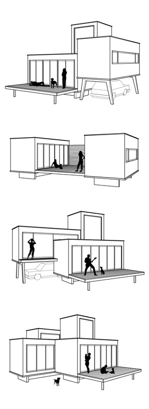 でも、例えば夫婦2人で、2つのエアロハウスから暮らしが始まるとします。子供が産まれて1つエアロハウスを追加する。しかし、やがて子供がひとり立ちして、1つエアロハウスが余ってしまう。そこで、今度はその1つを海の見える郊外の土地に移して、週末は海辺で過ごす生活を。さらに年は経過し定年を迎え、今度は都心近郊に1つだけエアロハウスを残して、暮らしの中心は郊外に移した2つのエアロハウスで...