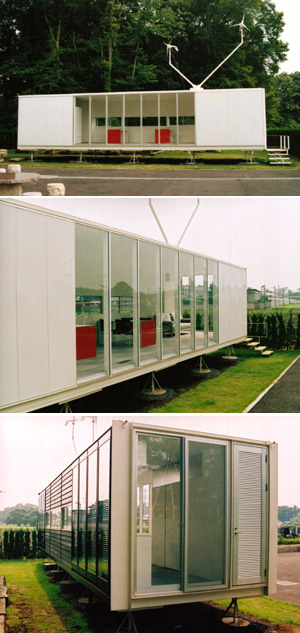 左の写真は、TAU(Temporary Accomodation Unit)という、エアロハウスの原型になった建物です。
