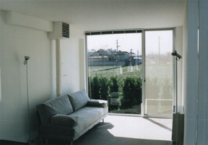 この建物の場合には、エアロハウス・ミューと同じぐらいの大きさのエアロハウスを2つつなげています。つまり、2つのエアロハウスの間にも床・壁・天井を作ることで、3倍ぐらいの大きさの空間を作っている、という訳です。ちょうど、側面がルーバーになっている部分が、エアロハウスをつないでいる部分ですね。