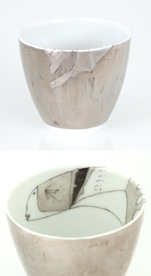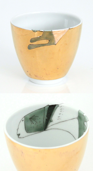 素焼きから本焼き、金・銀の色入れをして再度焼き、生き物の絵付けをしてからふくらみをつくり、4回目の焼きでようやく完成。陶器よりさらにデリケートな磁器は、焼いてみたら鉄粉が浮き上がってきたり亀裂が入ったりと、慎重さを要する作業とたくさんの工程が、この小さな器に詰め込まれているわけです。