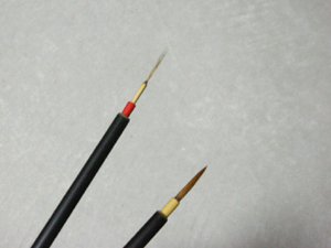 細い細い筆。それでもあの微細さを表現するのはむずかしく思える。