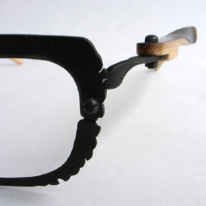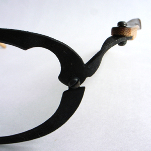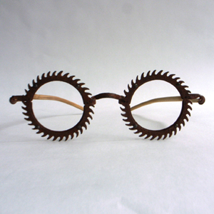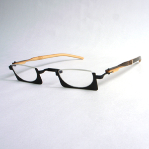 そんな中、ヤマシタさんは老舗の眼鏡工房で眼鏡作りの技術を修め、工場長を勤めた後に作家として独立します。もともと大学時代に服飾の歴史を研究していたこともあり、日本の古来の手仕事の復活と共に独自の発想を組立て眼鏡でありながらアートピースでもあるという作品を発表していきます。