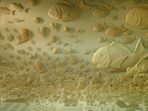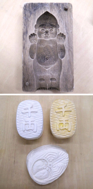 冠婚葬祭や年中行事での菓子づくりに使われてきた菓子木型は、江戸時代から受け継がれ現在は衰退モード。古くはお祝いの都度、その内容に応じた図柄を木型職人に特注し、それをもってお菓子をつくらせたというから、日本にはなんと粋な風習があったことか!職人は職人で、できあがりの和菓子を頭に描きながら、左右・凹凸逆の意匠を彫りこんでいくそうで、その技量たるや相当なもの!