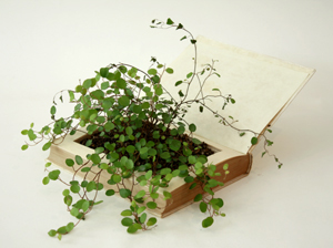 まるで植物が本を押し開いたみたいな、不思議な光景