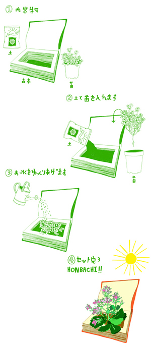 本と、植物、そして植物を植えるための土がセットになったキットをお届けするのが、この本鉢のセットです。