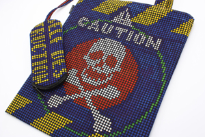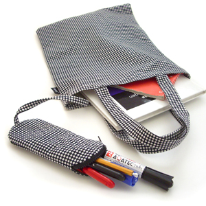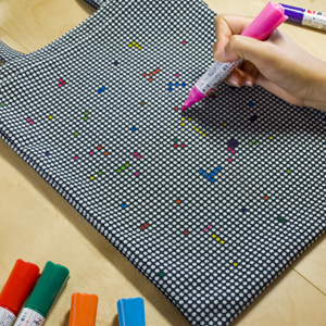 試作を重ね、マーカーで白いドットを塗りつぶすというコンセプトに沿ったテキスタイルを考案し、そこからトートバッグが完成!
