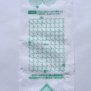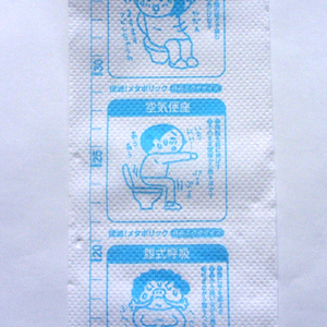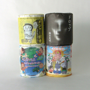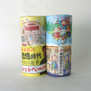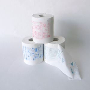 これは林製紙というトイレットペーパーのメーカーさんが作っています。先代の社長さんが先見の明でカラープリントの出来るプリンタを導入したらしく、今でも珍しいトイレットペーパーへのカラープリントができるという訳です。