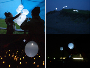 ボワーンと白く闇夜を照らす沢山の風船が、さわさわと多摩川の風に揺れる感じは、なかなかさわやかで。