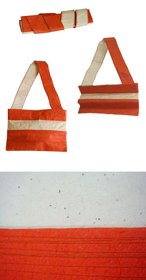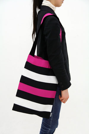 なお、素材も縦縞と横縞でちょっと違っていて、縦縞のものは張りが出るようにちょっと厚手の帆布を、横縞のものはきれいに折れるように薄手のコットンを使ってあります。