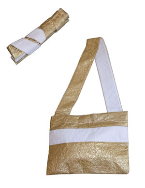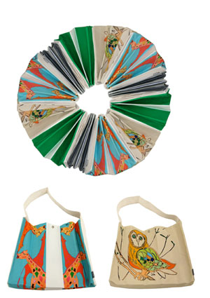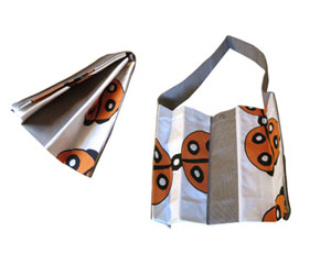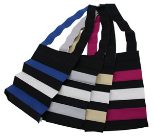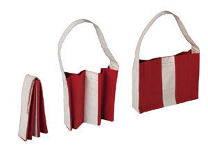パターンは縦縞(Stripe)と横縞(Border)のものがあって、どちらもパタパタと蛇腹状に折っていき、持ち手の部分を収納すれば棒状に小さくなるよ。っていうバッグです。