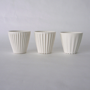 型物の磁器といっても型ができれば何でも作れるという世界ではなくて、例えばこの溝を作るために器自体が分厚くなっても意味がないし、薄くしたらすぐ壊れてしまうし。やはりいろいろな不具合が生じるんですよね。