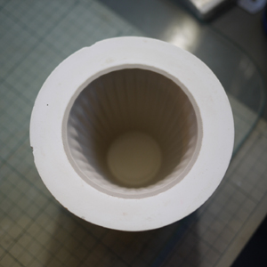 型物の磁器って、まず原型を作るところからスタートします。飛松さんの場合は凸凹したコップの外側部分の原型です。次にその原型の石膏型を作ります。