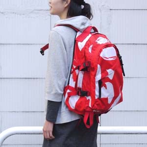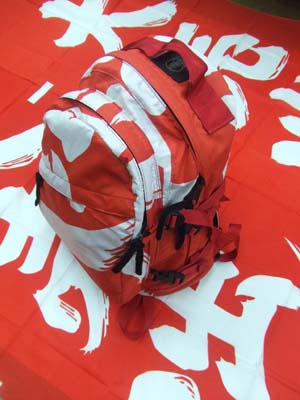前から見ると単なる赤いリュック