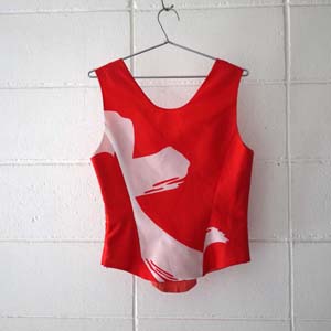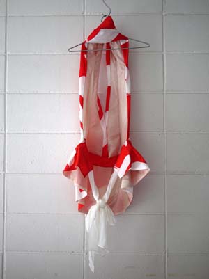 「大売り出し」の旗を素材に形成されたドレスは、多くの人々が普段から目にする様子から少し姿を変え人間の欲求の変化を「自分自身」を含め、楽しむ意味合いも込められています。