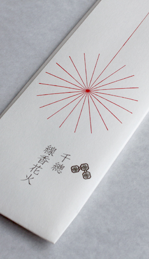 それから、パッケージに入った「千總」の文字と印も気になるところです。実は、これは450年も続く京友禅の老舗の名前。人の手で大事に作られた線香花火を現代の暮らしの中で守り伝えていくのは、さすがの仕事です。