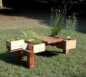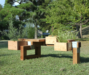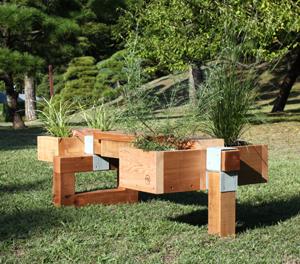 さらに、Block PLANTERやBoxはベンチ本体と組み合わせるだけではなくて、パーツどうしを積み上げたりして、形を作っていくこともできます。