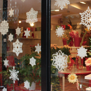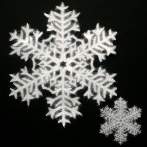 和紙を切り抜いているのではなく、もともとこの形の型枠ですいているので周りに細かい和紙の繊維がついているままで、ふわふわとしていてなんとも雪っぽく仕上がっています。