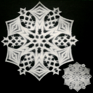 もしかしたらこんな雪の結晶もあるんだろうな、と思ったり。いや、意外に調べてみるとトリッキーな形とか、きれいな形いろいろあるんですよ。