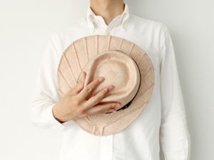 これはMicroWorksの海山俊亮さんと、ノックの帽子屋の横山智和さんが共同製作した帽子です。