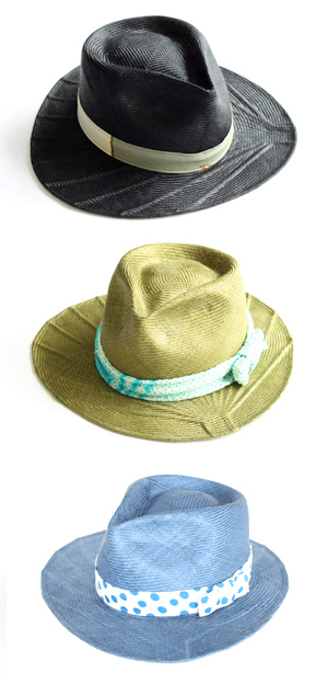 ベーシックな黒やアイボリーに加えて、爽やかな青と、オリーブっぽい緑。それに、帽子に合わせたリボンも小粋で素敵です。