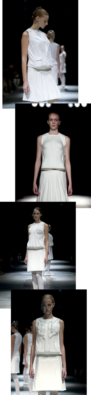圧倒的な手業によって作り上げてきたコレクションや、服作りのプロセス自体を再構築するコレクションを経て、新しい技術へと食指を伸ばし始めた2011 S/Sからの3回のコレクション。