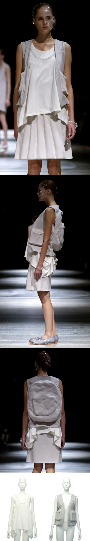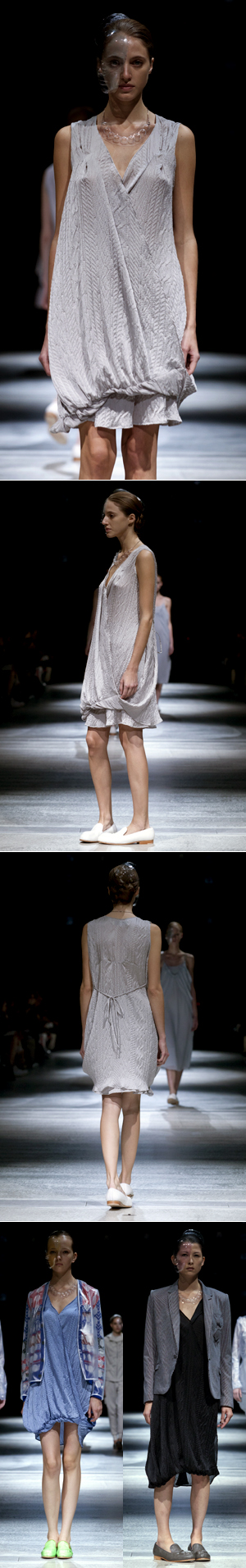 「SHELL」と名づけられたANREALAGE(アンリアレイジ)の2012 S/Sのコレクションは、彫刻のような、静かな造形の服の登場で幕を開けます。