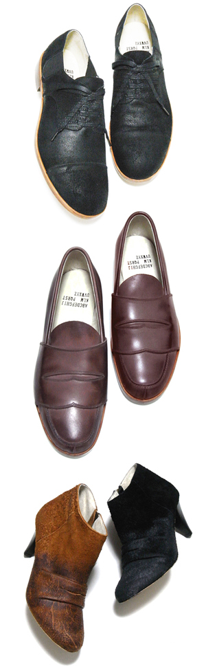 まるで、断片的に残された靴というものの情報を手がかりにして、新たに靴が作り出されたようなコレクションは、新しい靴作りの手法に対する可能性を感じさせる、予兆に満ちたコレクションでした。