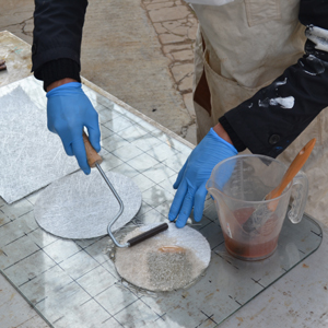 溶剤を塗って型に貼っていきます