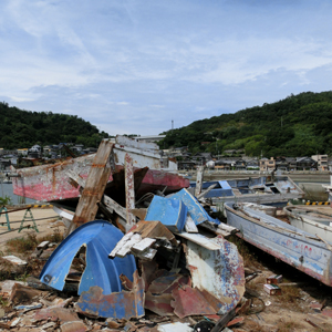 さて。そんなFRP。実は西原さんにはずっと身近な素材でした。なぜならtestisがある岡山県の児島がさびれた港町だったから。海に行くと使われなくなった船体が積まれて廃棄されている。そんな風景が日常だったんです。