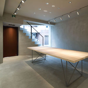 コンクリートと木と鉄で構成されたストイックな空間の所々に