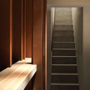 赤茶けた扉・壁・柱がキリリと映え、効果的に存在していて。