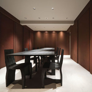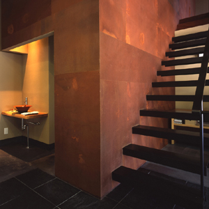 建築内装での大胆な使用は、圧倒的な重厚感があって