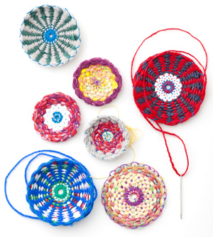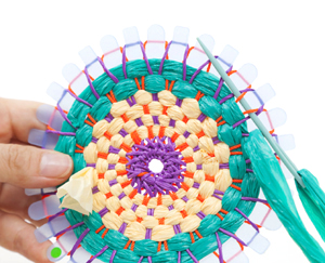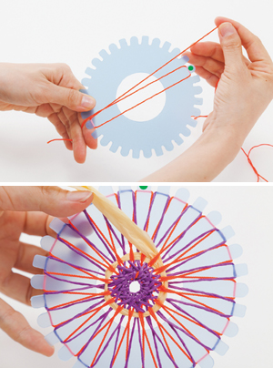 歯車みたいな形のプラスチックのプレートを使って、まるイロを「織る」のです。