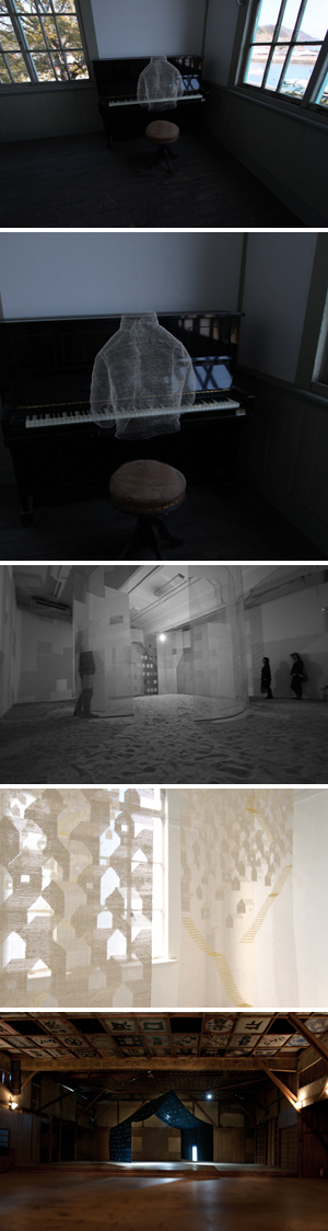 しかも井上さんは、アトリエで作ったものをどこかに持って行って展示をする、ということではなくて、発表をする場所に自分が行って、そこで過ごすというか暮らすというか、その場所に流れる時間の中で感じたものを、その場で作品として作り上げる、ということに興味があるようです。