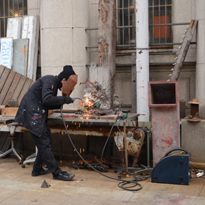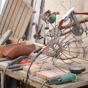 他の商材を作るように集めた純粋な鉄くずをリメイクです。すごくとげとげしているので危ないですが、それがボリュームになるとすごくおどろおどろしく面白いです。