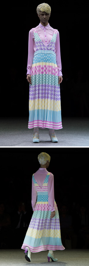 そして、色に焦点を当てた今回のコレクションでは、逆に服の形自体には手を加えず、一般的な服の形、素直な服の形にすることで、色の変化がより際立つようにと考えられています。