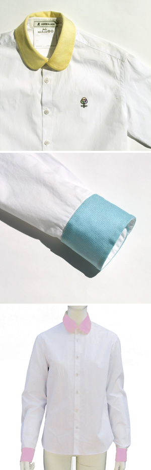 ブラウスは襟と袖が色付きます。