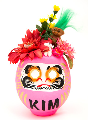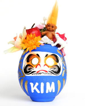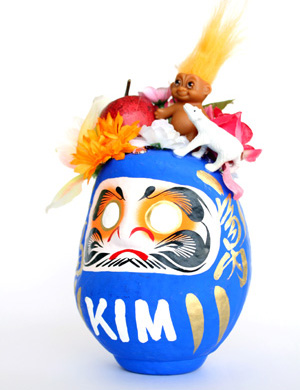 胸に大きく「KIM」の文字が入ったダルマ。