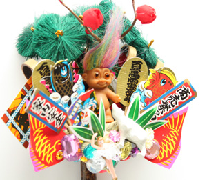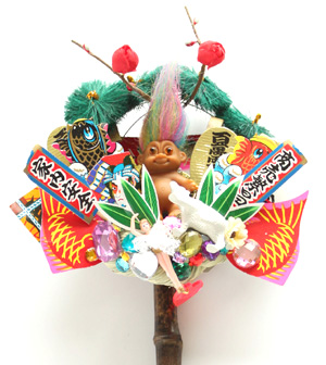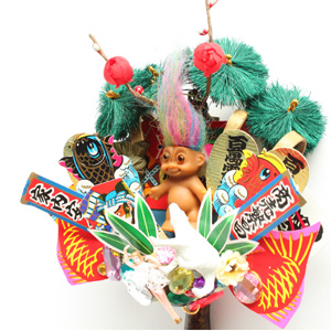 松、梅、鯛。和の飾りに混じって、トロールやフィギア。