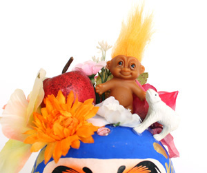 熊手にも、トロールがいて、動物がいて、キラキラがあって...と、いつものKimさんテイストなんだけど、小判とか、鯛とか、松とか、梅とか、和なアイテムがどっさりと。